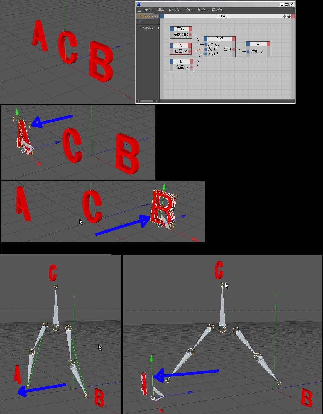 1.合成にABCとつなげる(ここではZ軸につなげてる)