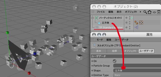 2.TP Standard EmitterのShapeにボックスを入れる