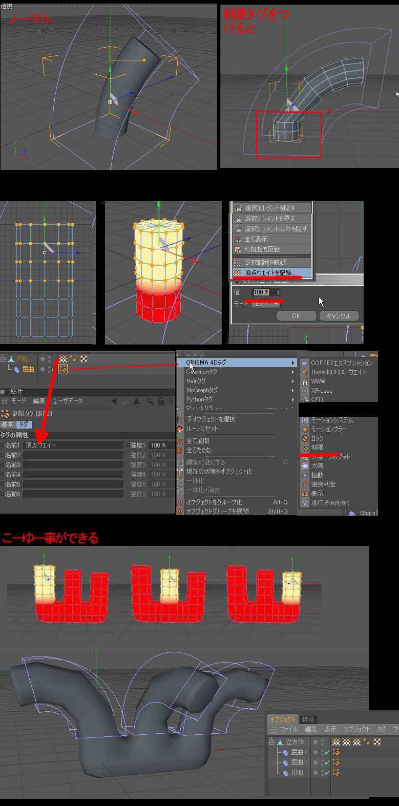 http://maxon.blog.shinobi.jp/Entry/54/デフォーマを制限タグで固定する