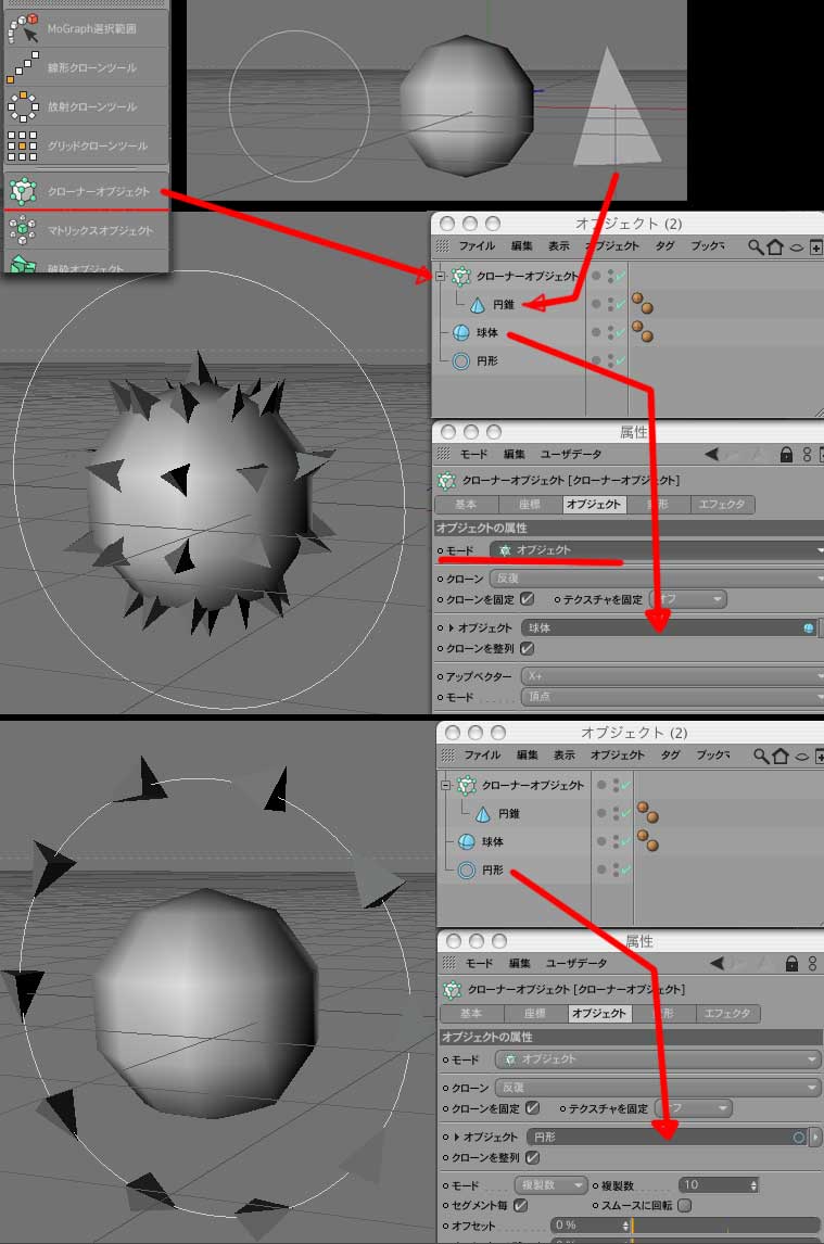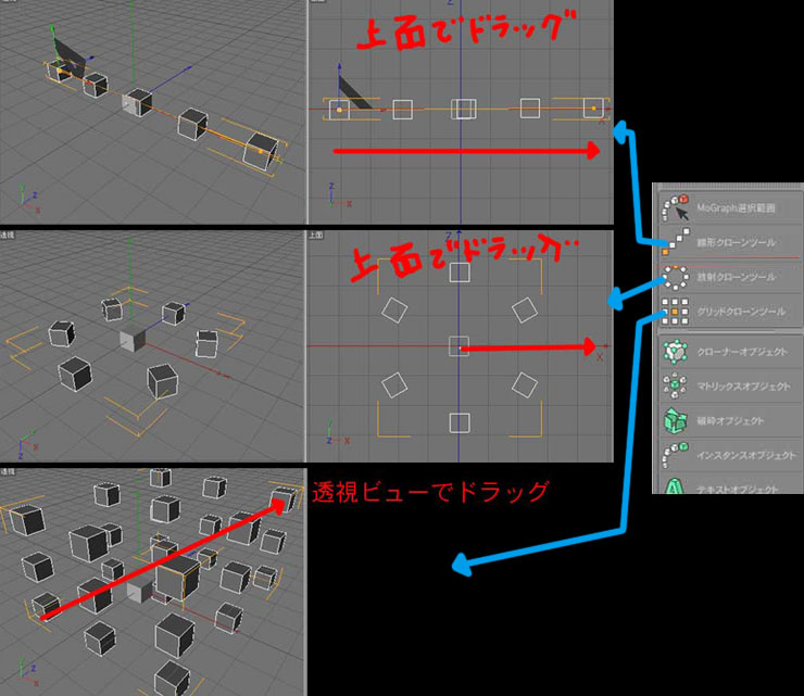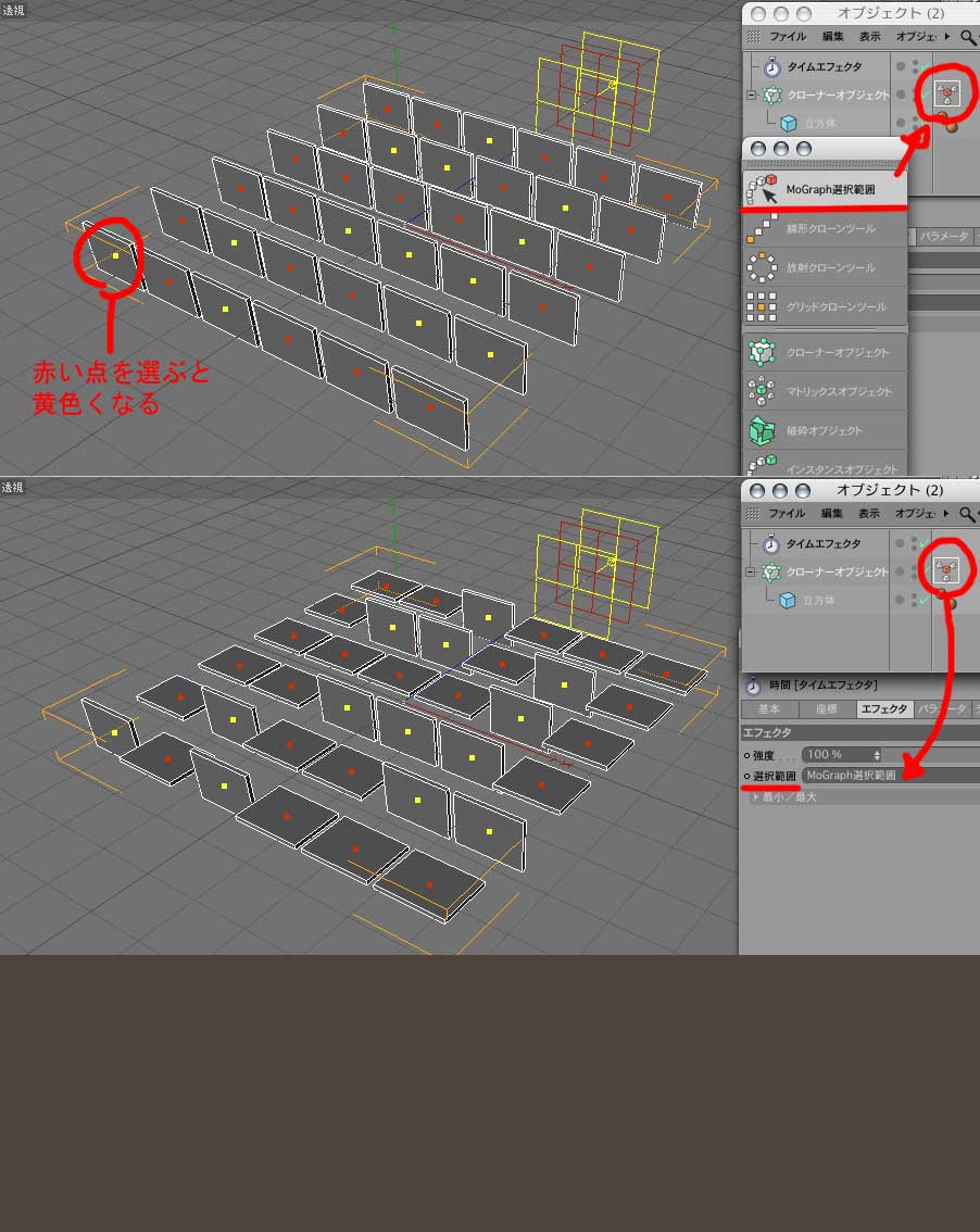 1.メニュからMoGrap >マトリックスオブジェクトを出す