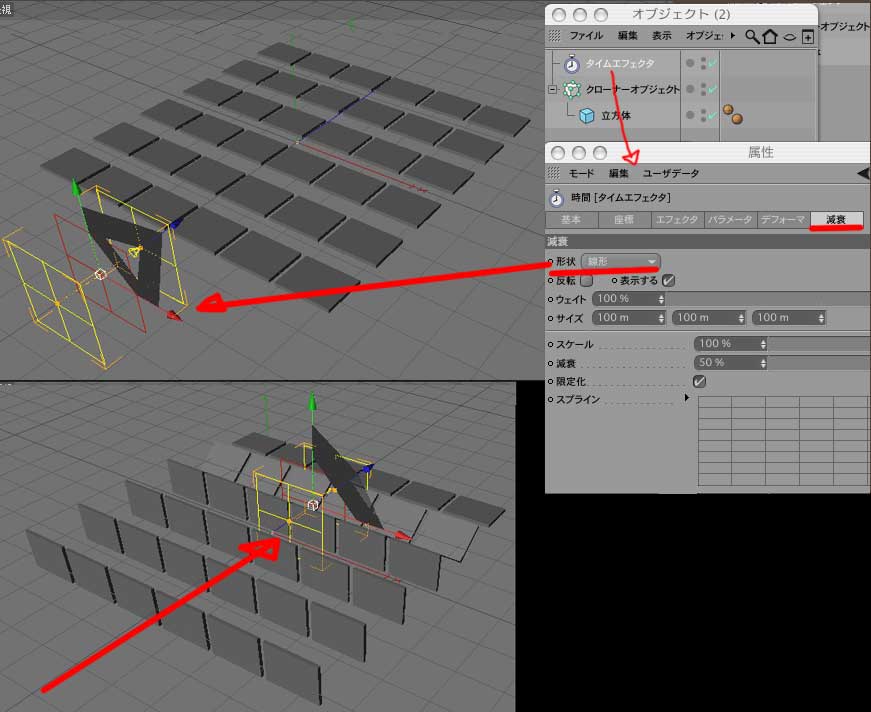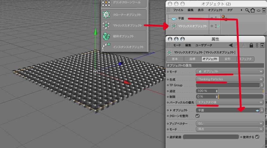1.地面とマトリックスオブジェクトを用意(マトリックスオブジェクトの設定はそのまま)
