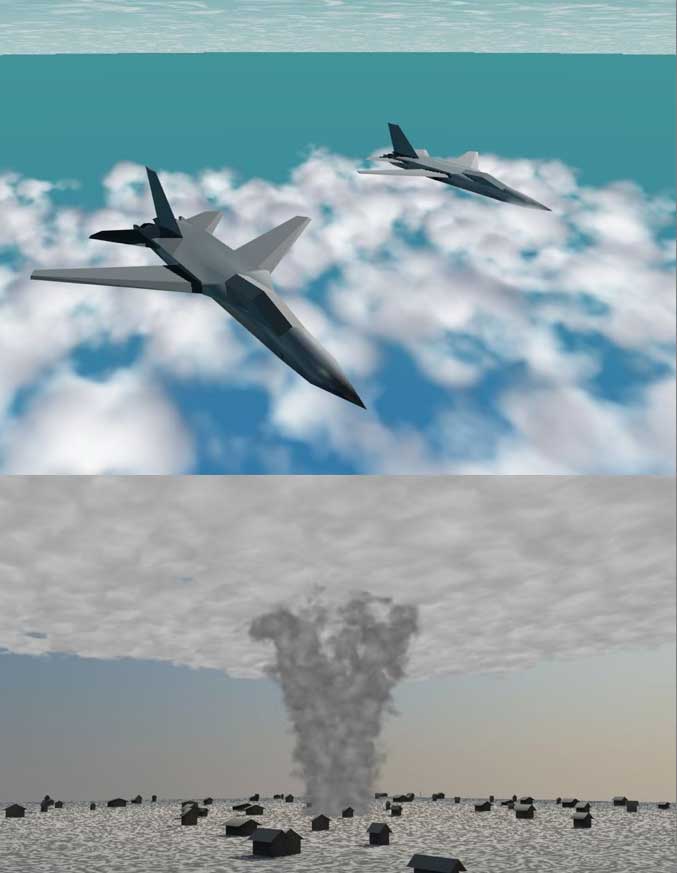 飛行機は平面、竜巻は円柱と平面を使ってます
