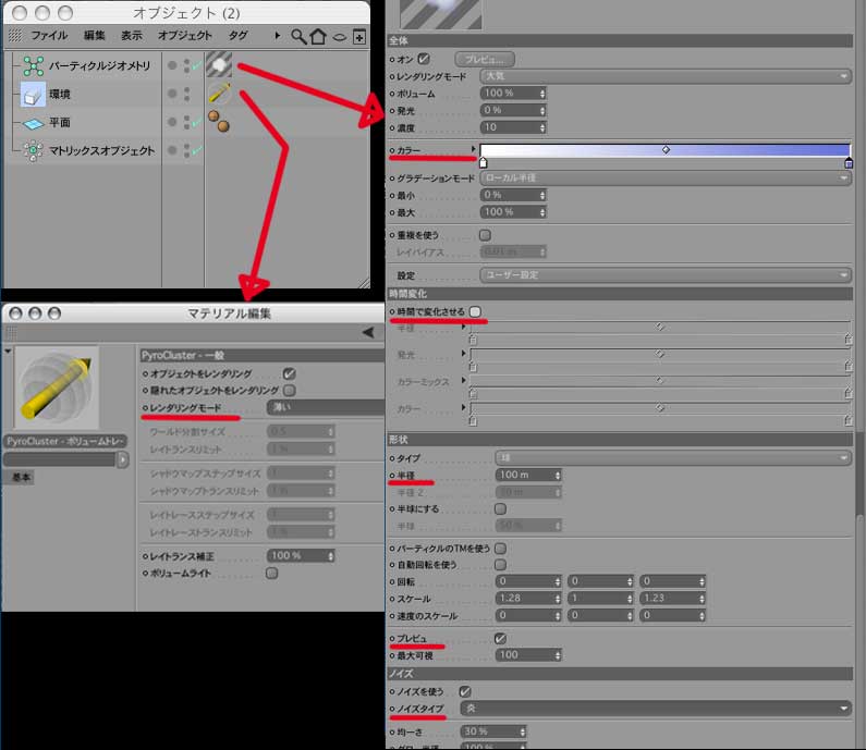 ノイズタイプで炎にしているだけで特に変わった設定はしていません