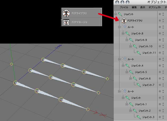 Cモーションのなかにいろいろオブジェクトが入れられます