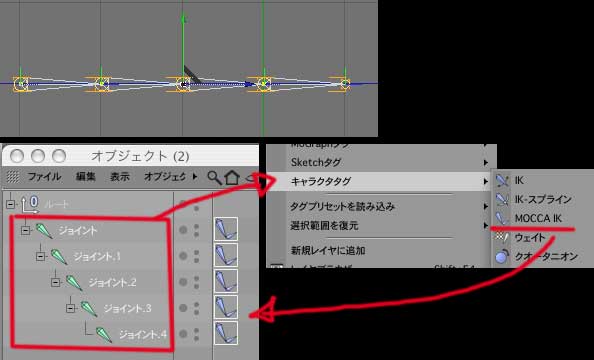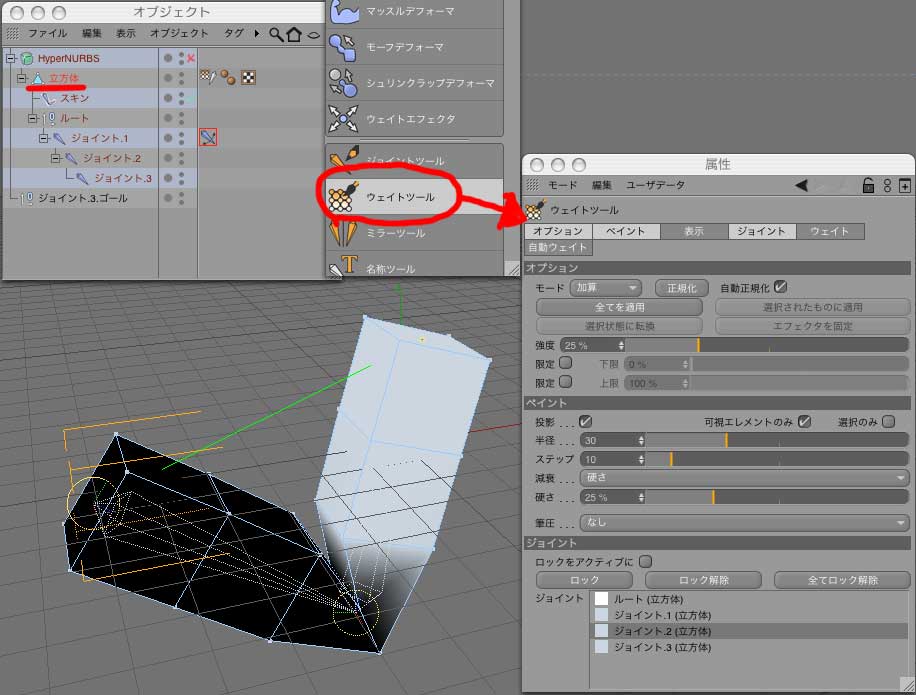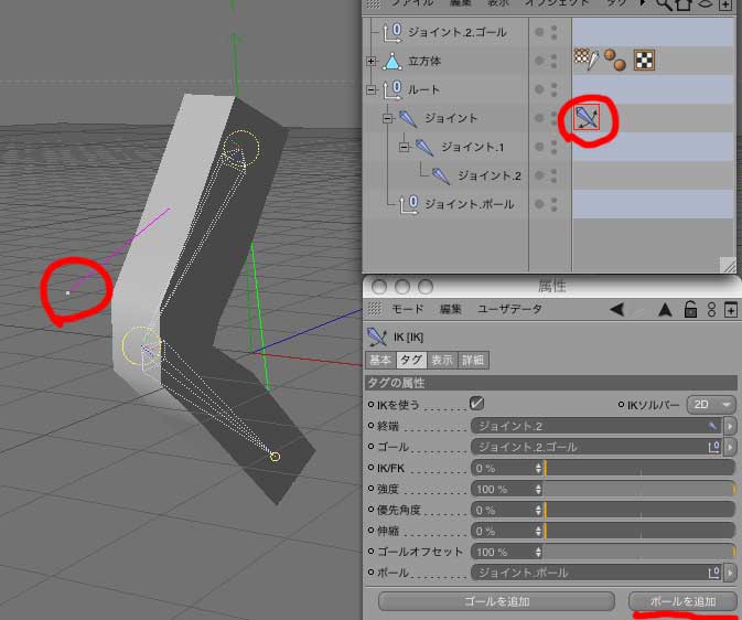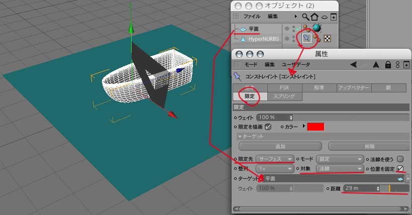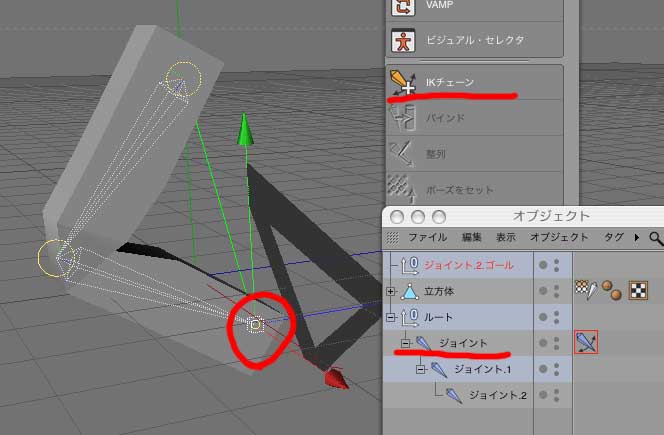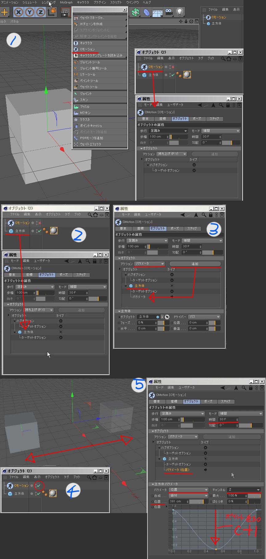 2:立方体を、Cモーション設定にドラッグ