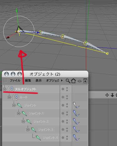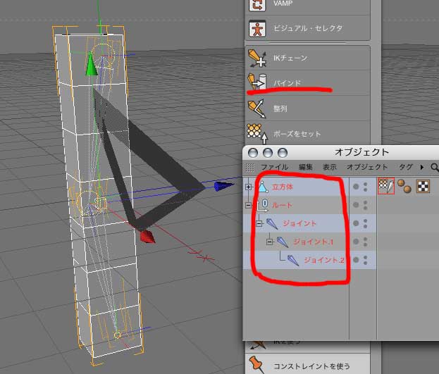とりあえず必要なのは赤と緑のオブジェクトです、それを階層構造にします