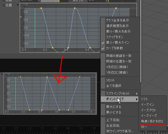 2:カーブにリニアがない(残念です)修正、、右クリックで”角度/長さをゼロ”にするとできました