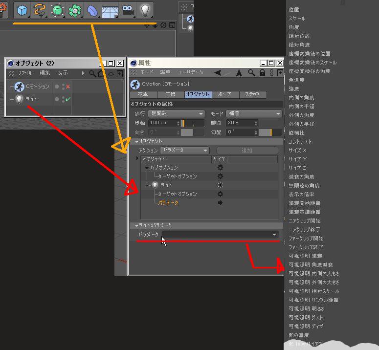 また、Xpressoのように各オブジェクトのパラメータにつなげて、アニメーションできるみたいです
